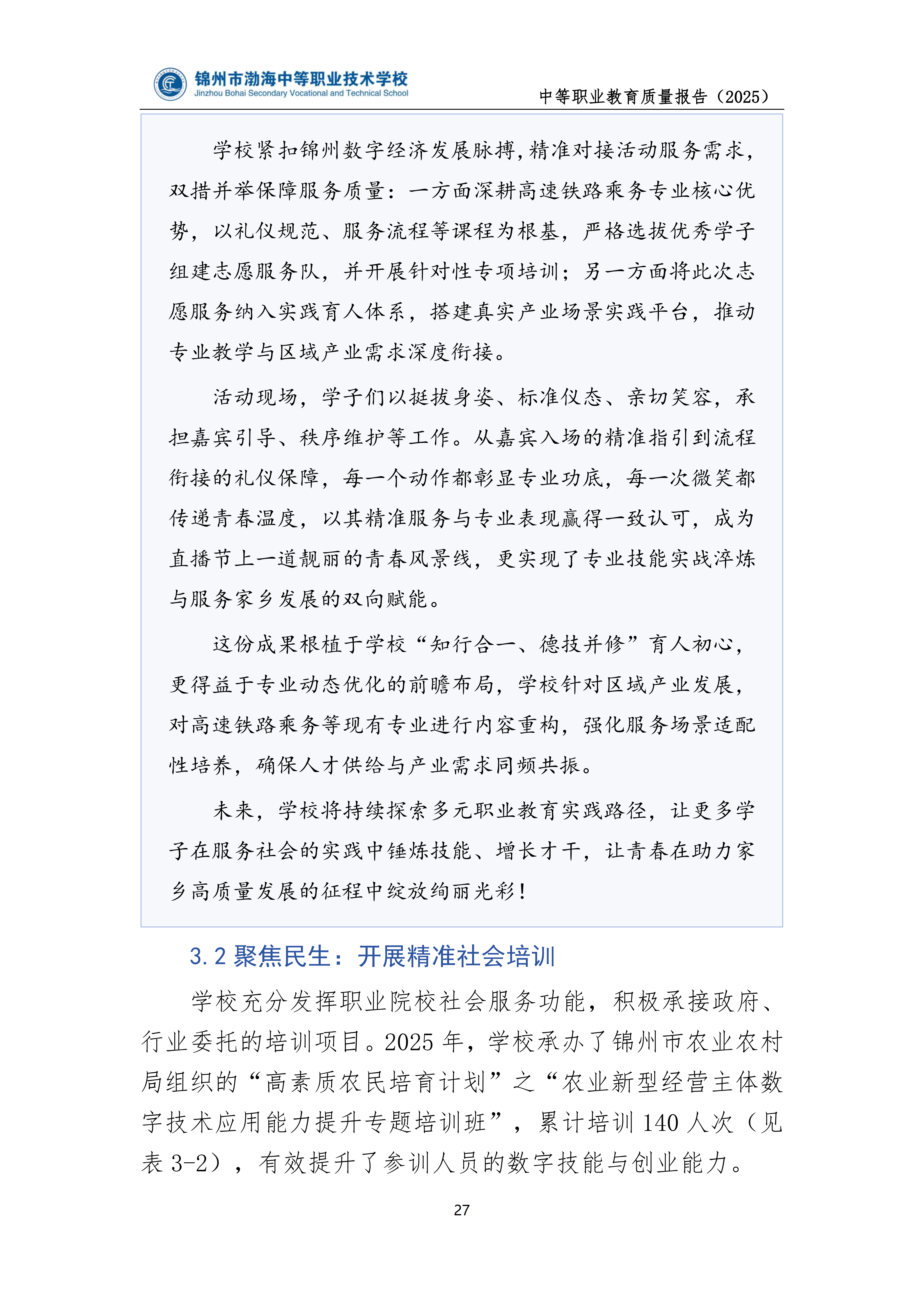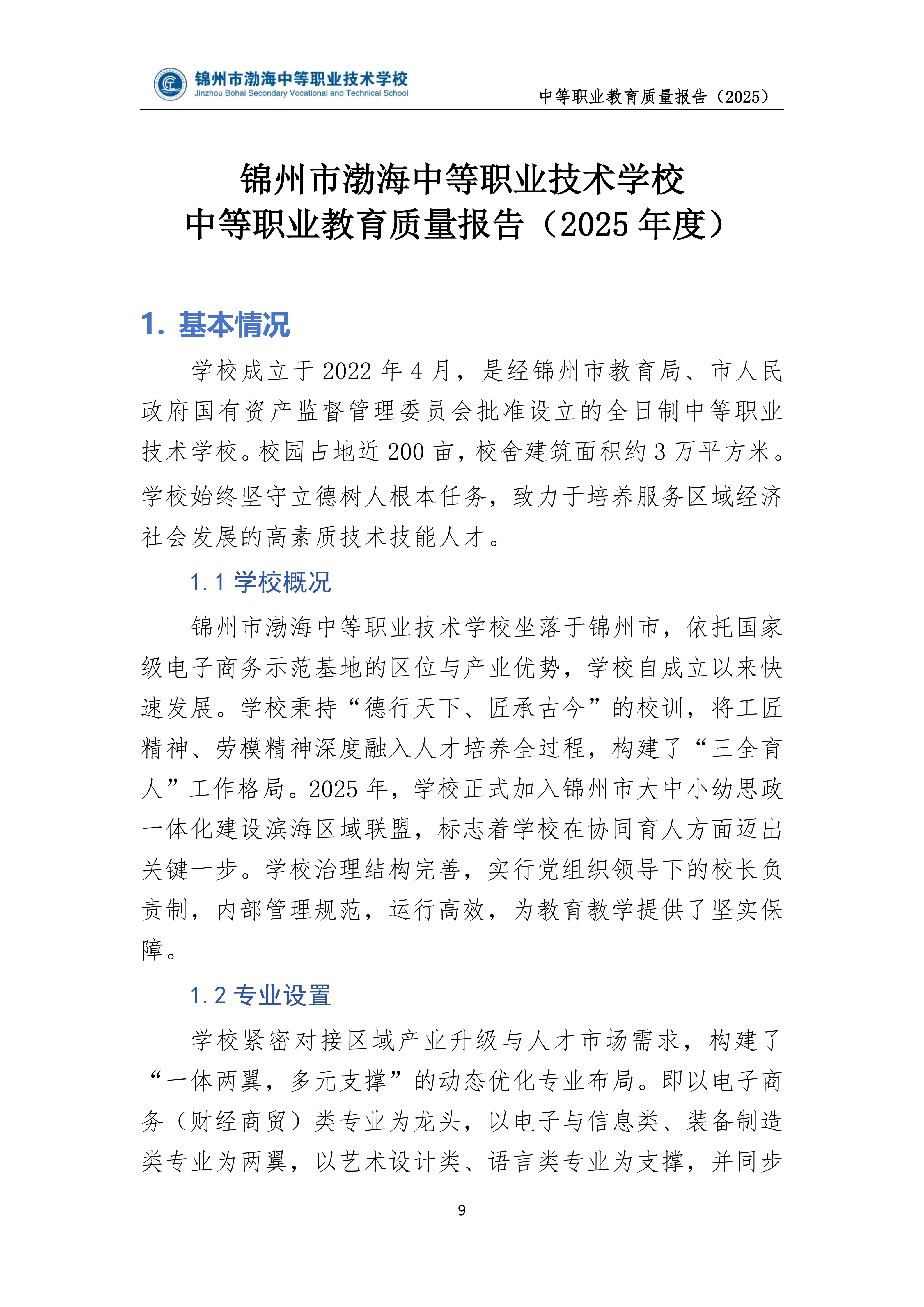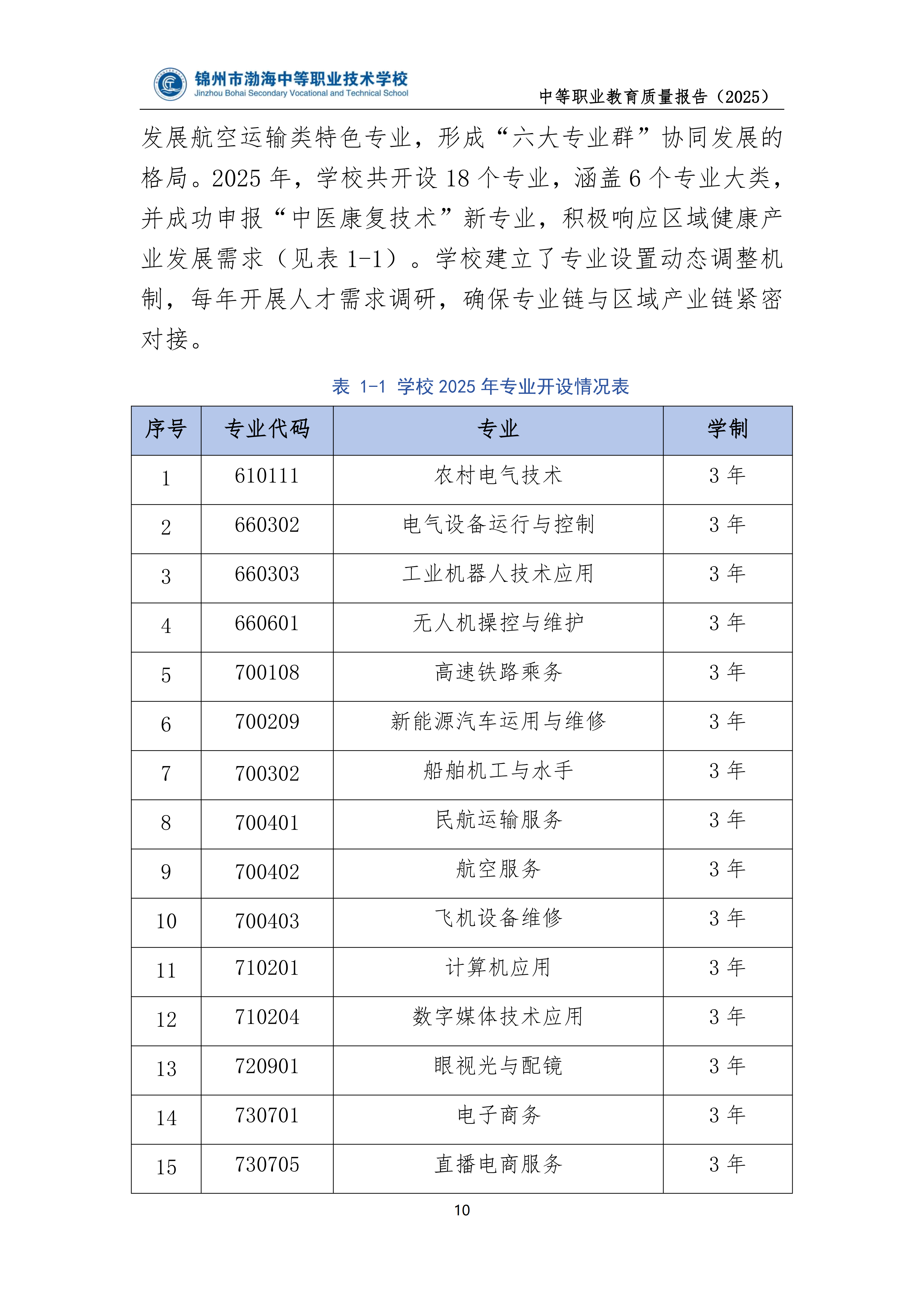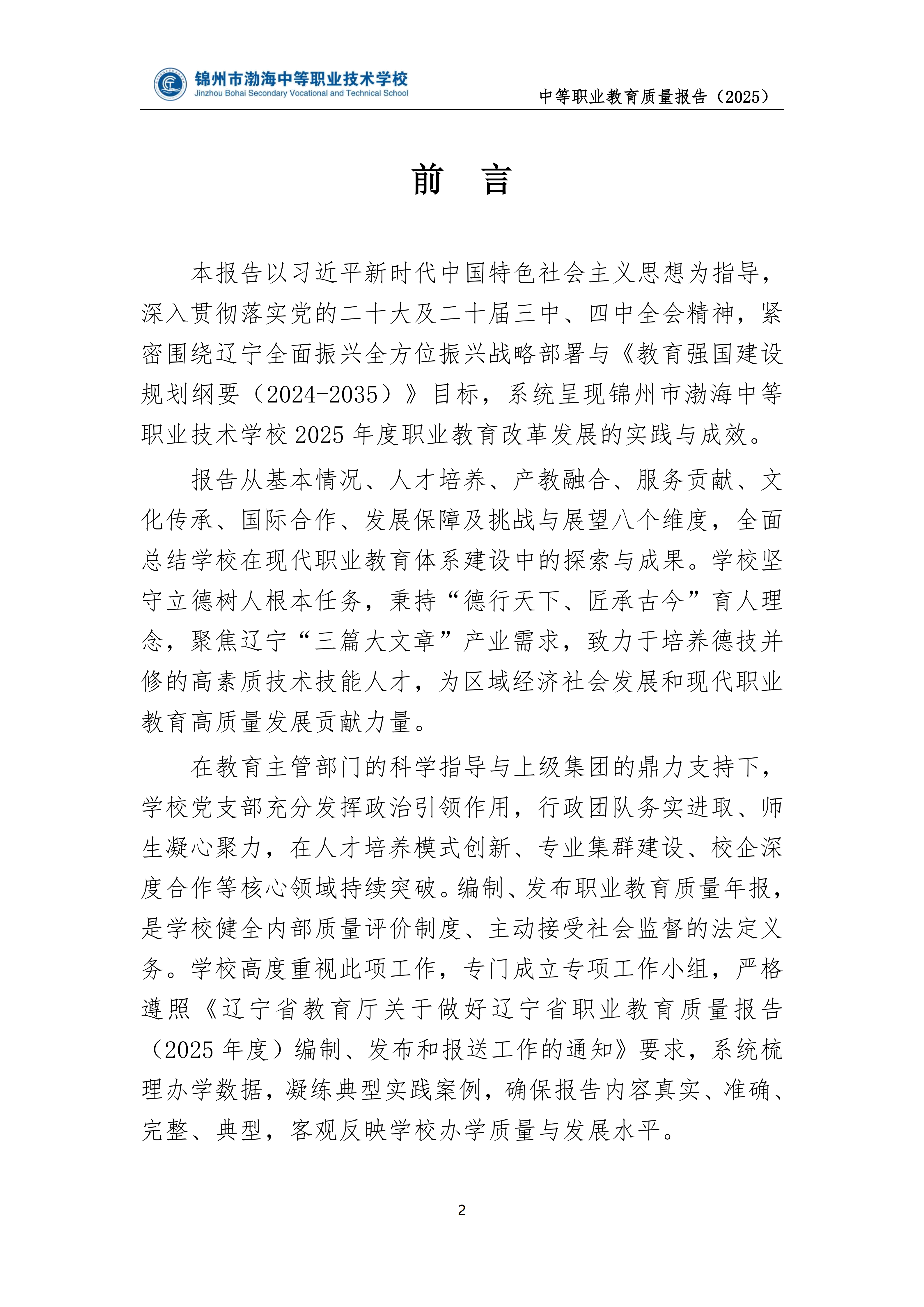 锦州市渤海中等职业技术学校中等职业教育质量年度报告