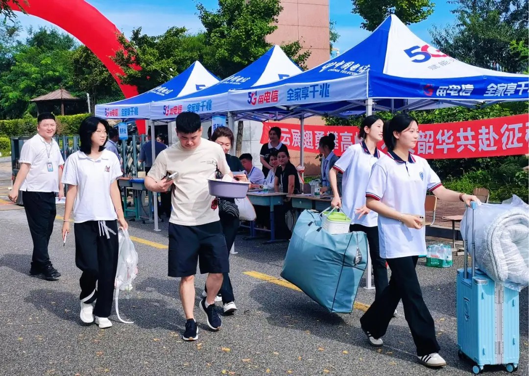 迎新现场,工作人员满怀热情。面对家长关于开学事宜、学习规划等问题,老师们逐一解答;学生志愿者们主动接过行李,护送新生直达宿舍;休息区提前备好饮水和座椅,为等待办理手续的家长和孩子提供便利。从踏入校门到手续办结,每一处细节都体现着学校的用心,让新生与家长倍感温暖。