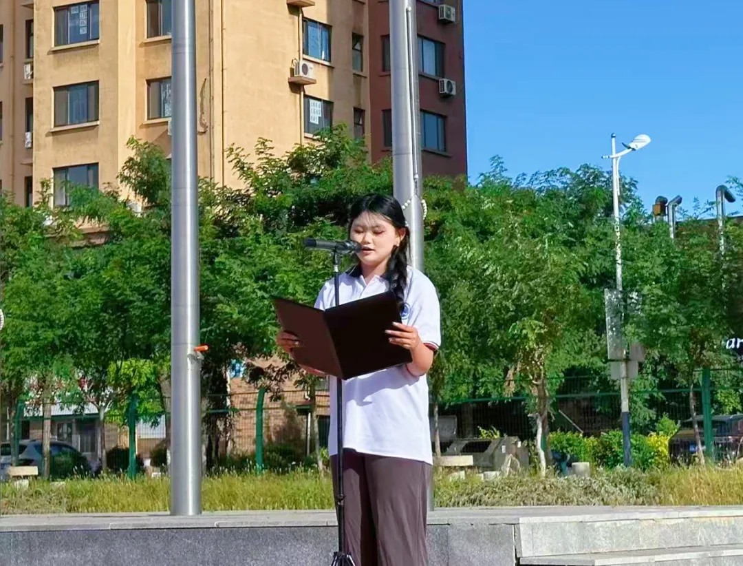 国旗下,24级3班杨婧淼同学以“牢记殷殷嘱托,强国复兴有我”为题作国旗下演讲。她用青春的声音做出承诺:要接续先辈奋斗足迹,勤学技能、苦练本领,以少年意气托举时代重任,为祖国繁荣复兴注入青春力量。