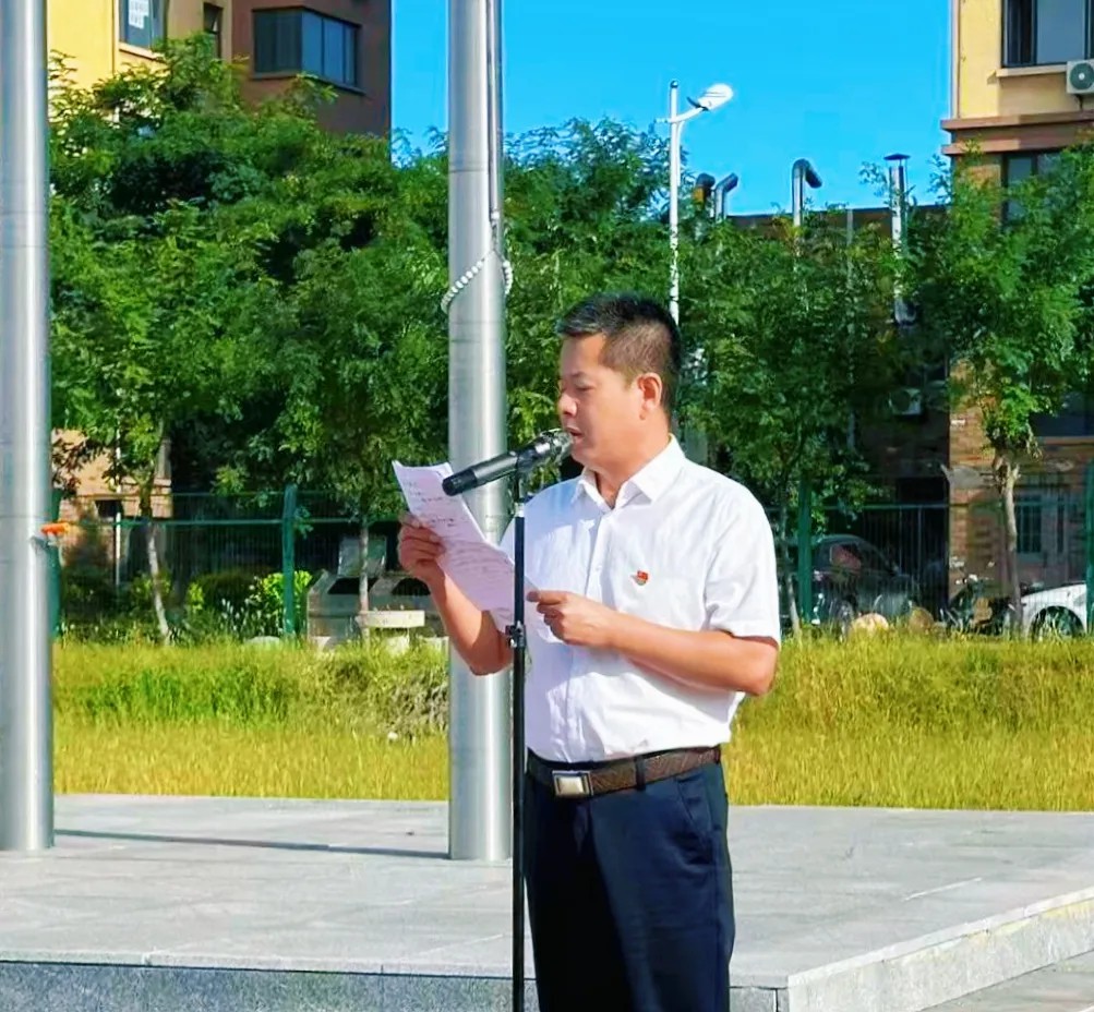 随后,学校党支部书记徐艳君发表讲话。他带师生们共同回望抗战胜利80年的峥嵘岁月和抗战英雄的浴血事迹,勉励同学们传承英雄遗志、发扬拼搏精神,把个人理想融入民族梦想,以赤诚之心践行时代使命,用“强国有我”的担当为新时代中国特色社会主义建设添砖加瓦。