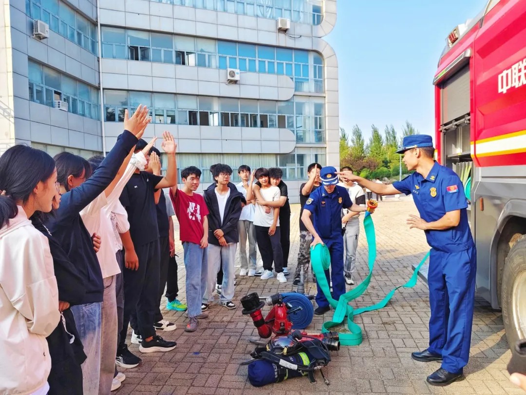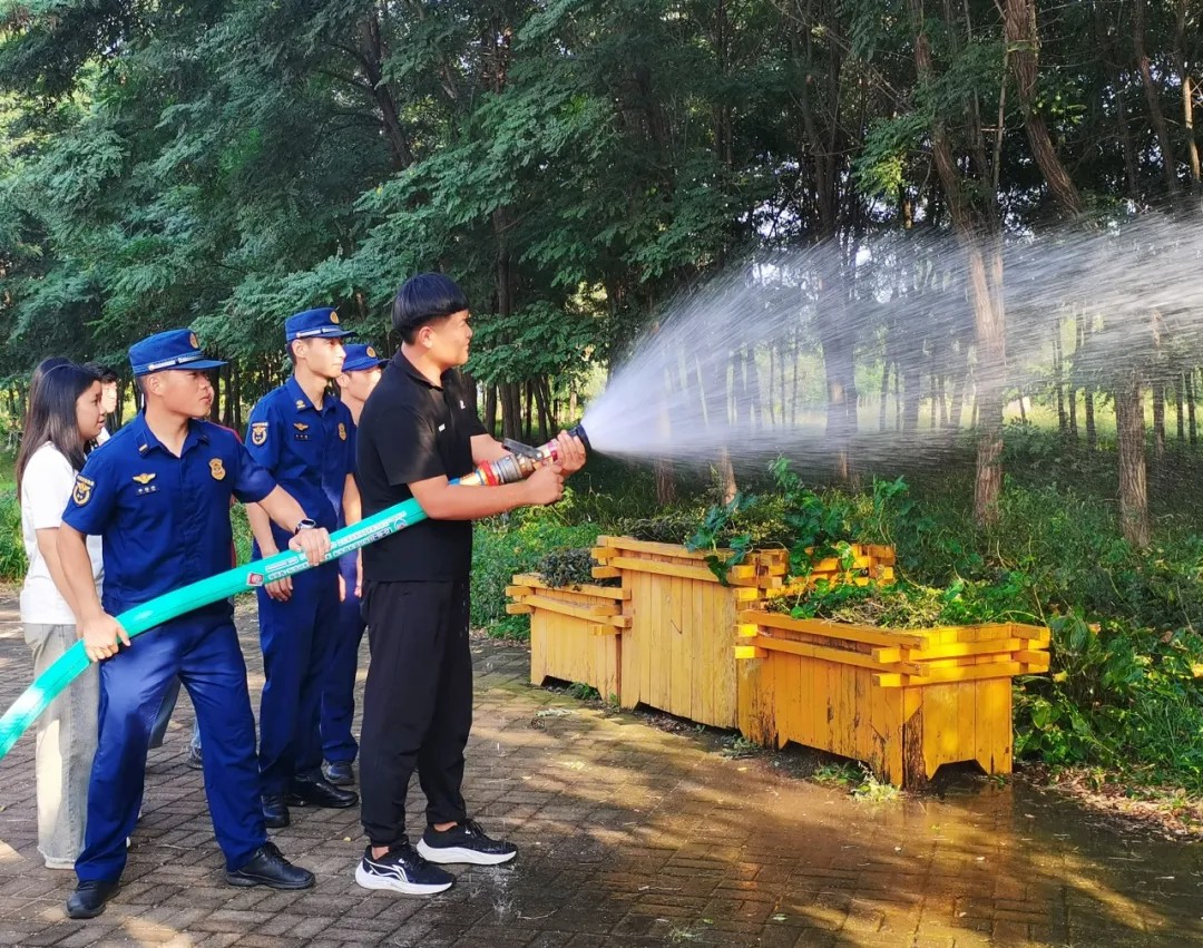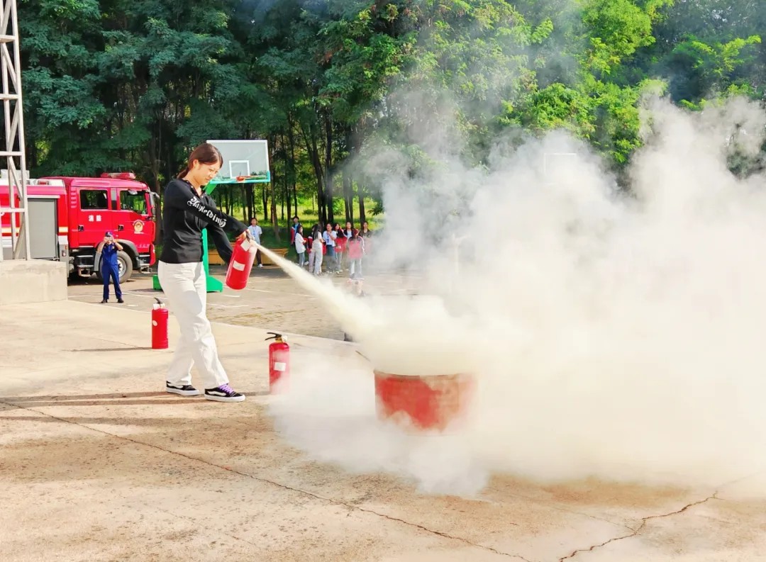 演练结束后,消防员在现场为同学们讲解和演示灭火器等消防设施的种类及使用方法,并邀请学生代表实操学习,让师生在实践中掌握灭火技能,进一步提升应急处置能力。