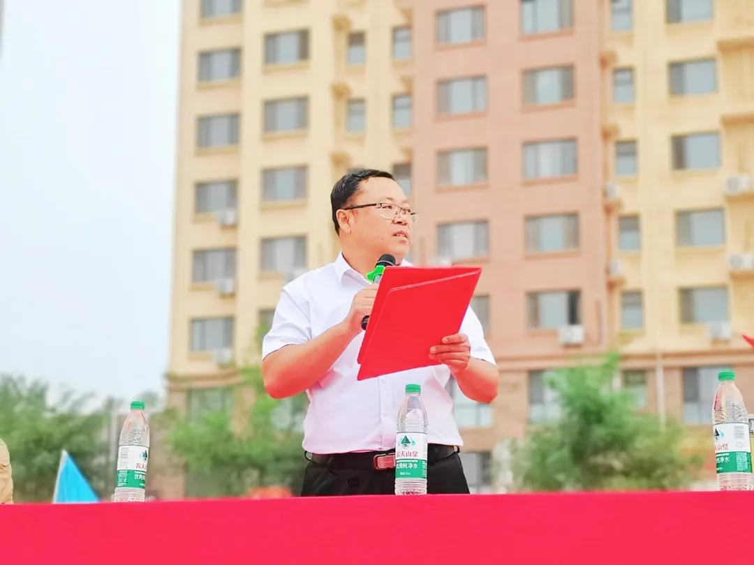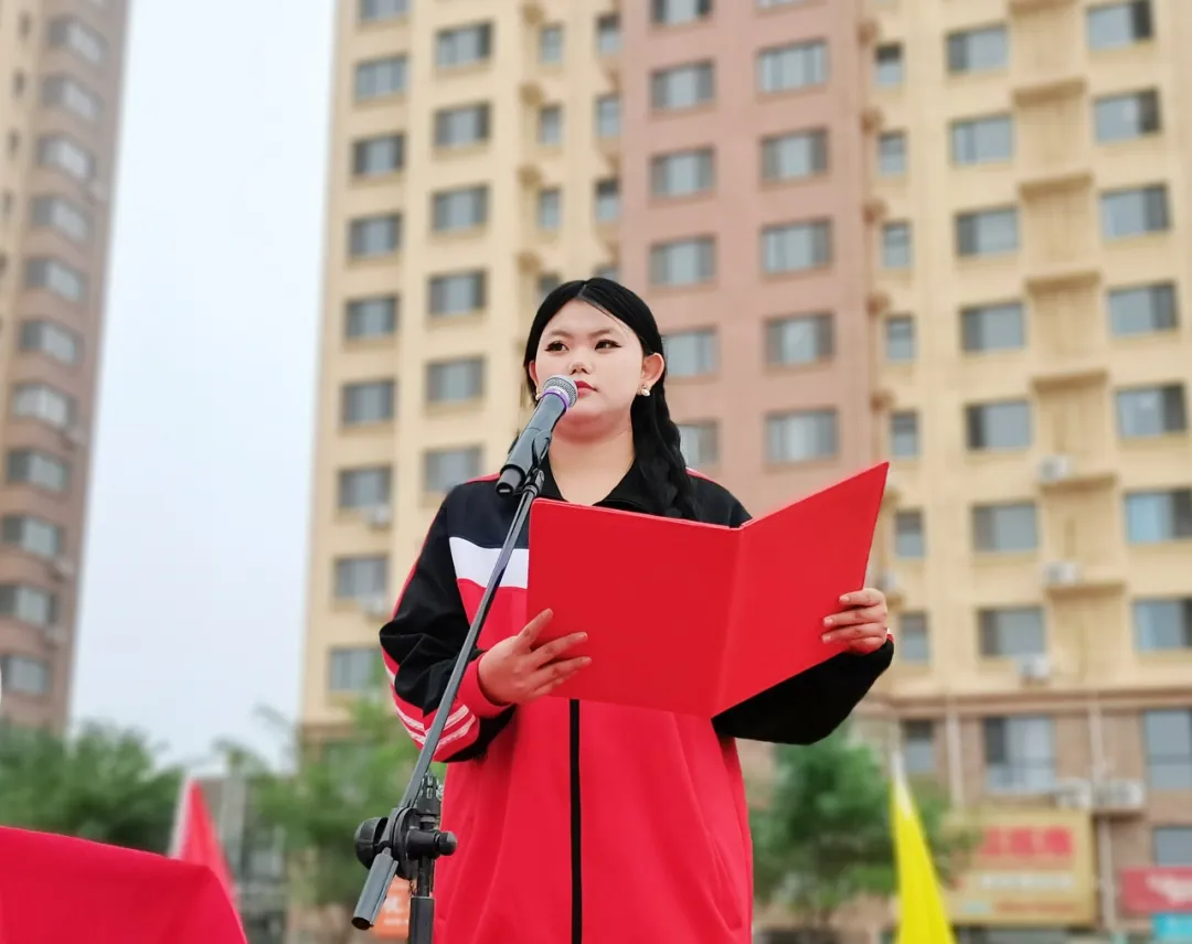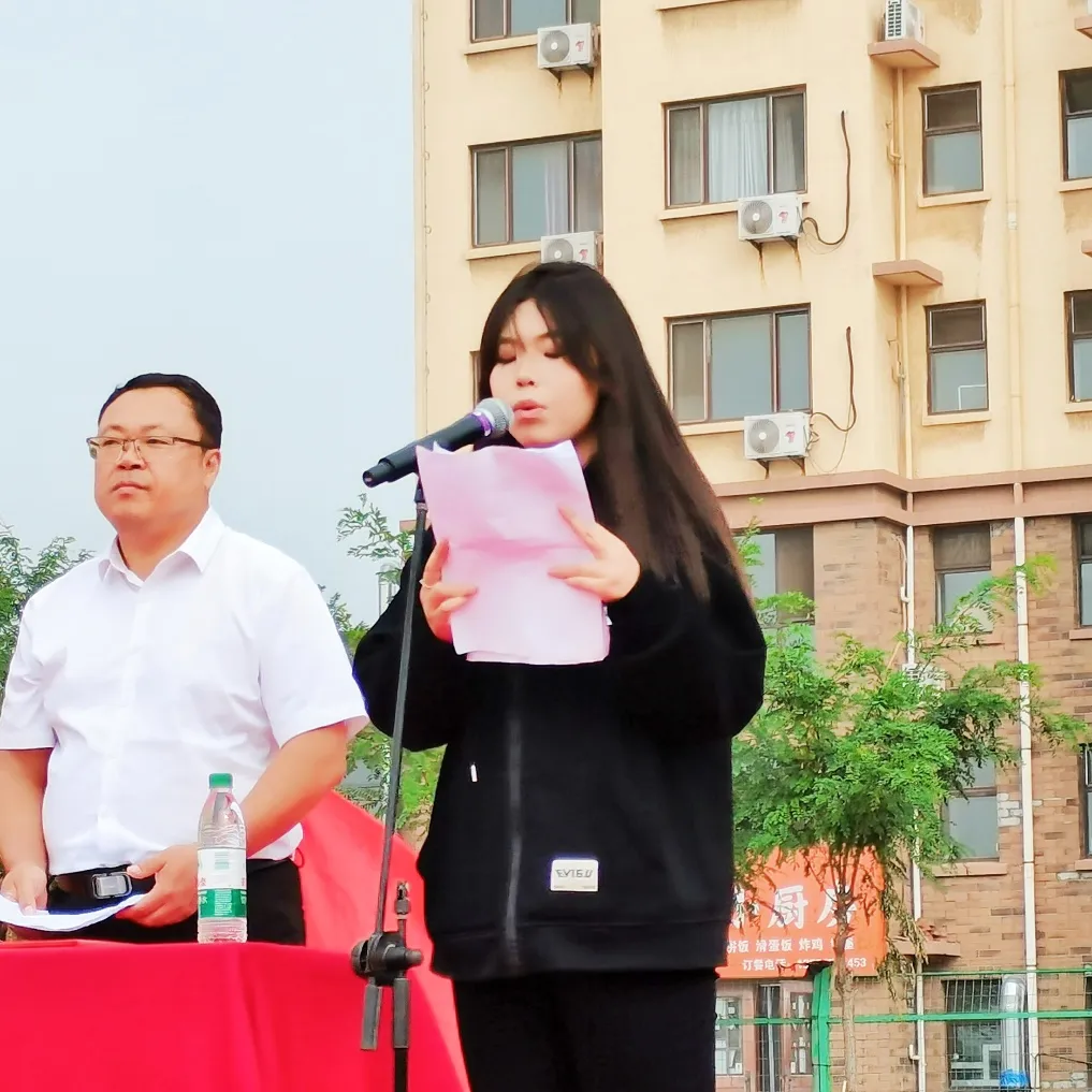开幕式上,学校党支部书记徐艳君、校长王一帆、副校长张强列席主席台,各方队依次入场,广播员杨婧淼同学现场解说。