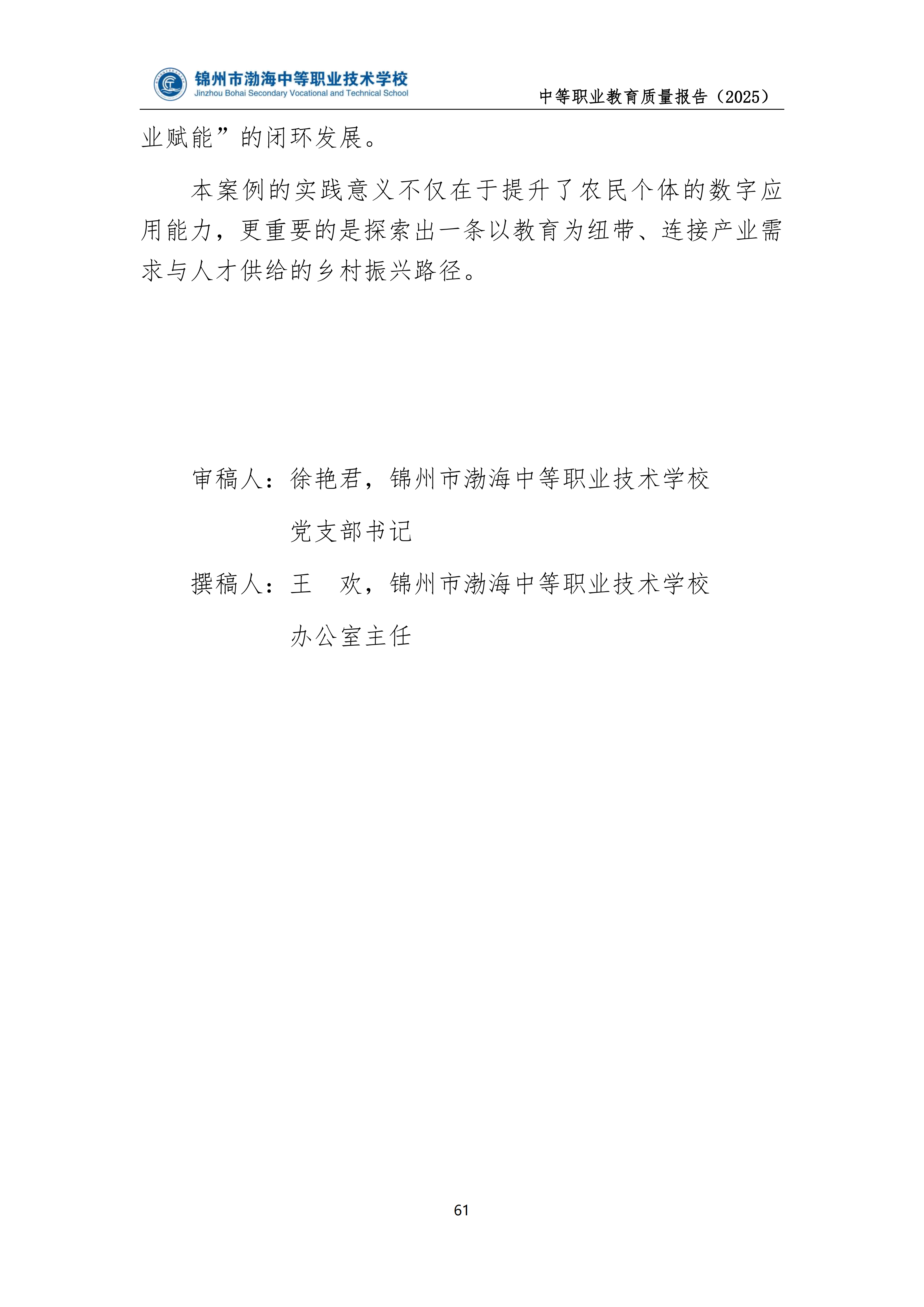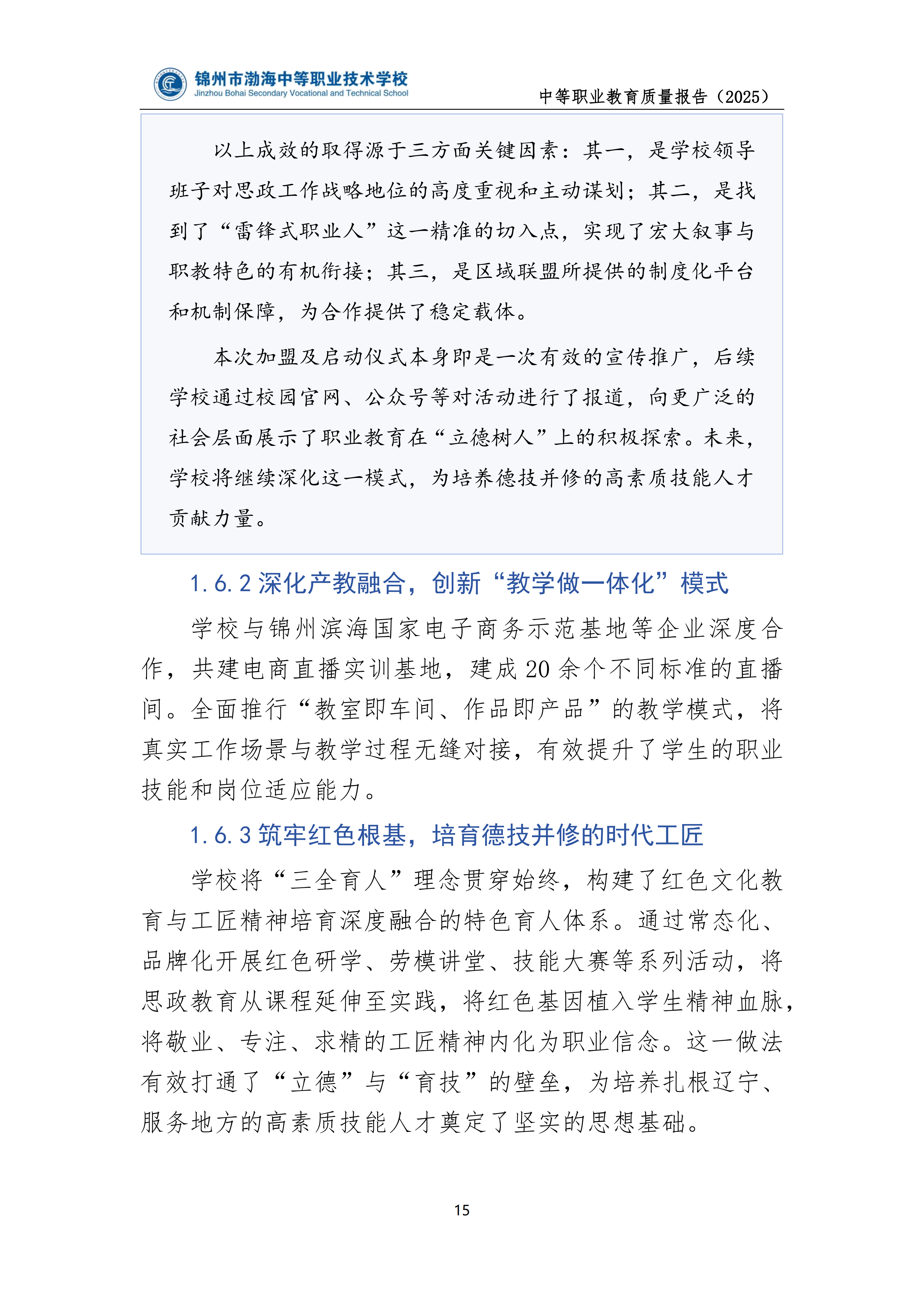 锦州市渤海中等职业技术学校中等职业教育质量年度报告