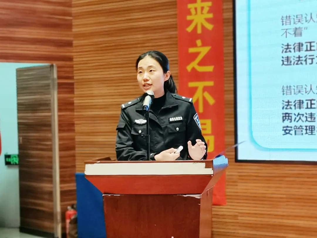 宋警官结合新修订的《治安管理处罚法》,聚焦校园高发违法风险,通过典型案例讲解、法律条文解读、现场互动问答等形式,引导学生树立清晰的法律边界意识。